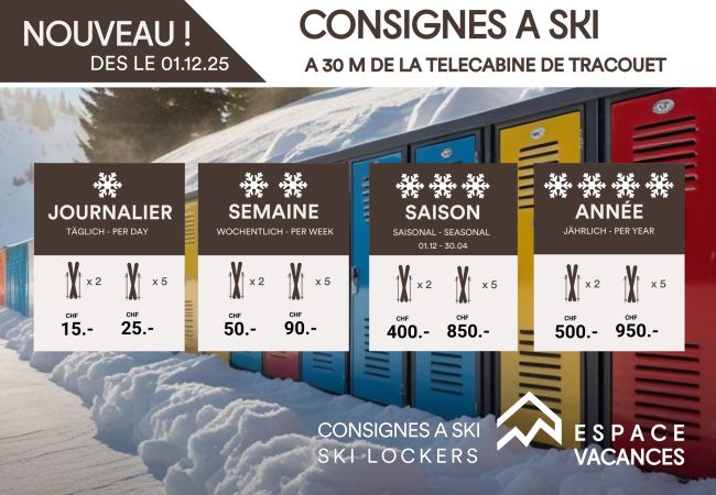 Für Ihren Komfort: Mieten Sie ohne zu zögern Ihren beheizten und gesicherten Skischrank (für 2 oder 5 Personen), nur 30 METER VON DER TRACOUET-GONDELBAHN ENTFERNT!