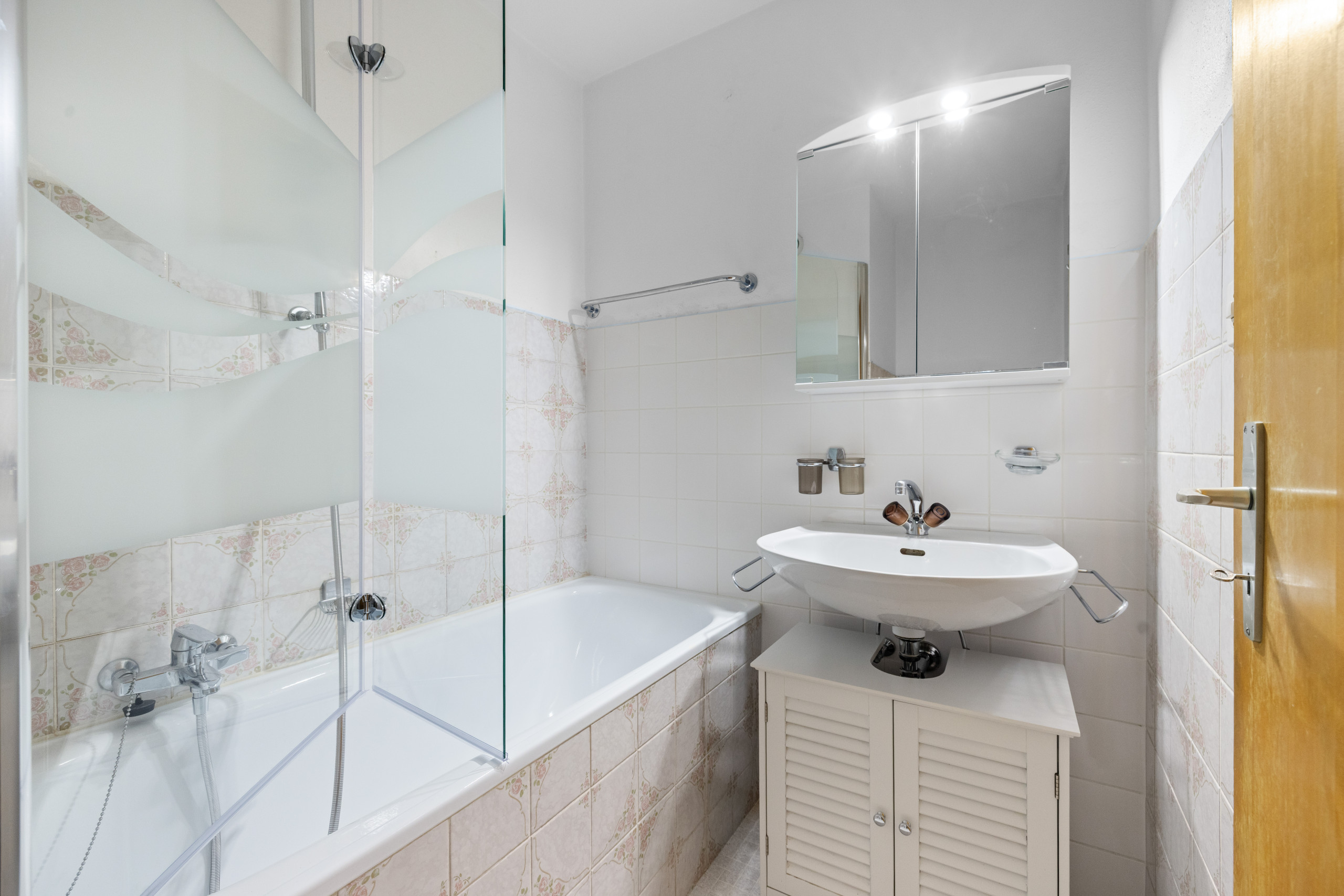Das Badezimmer besteht aus einer Dusche, WC und Waschbecken.