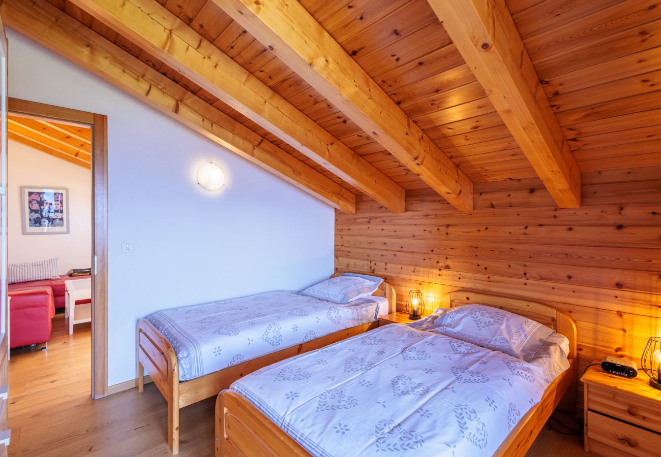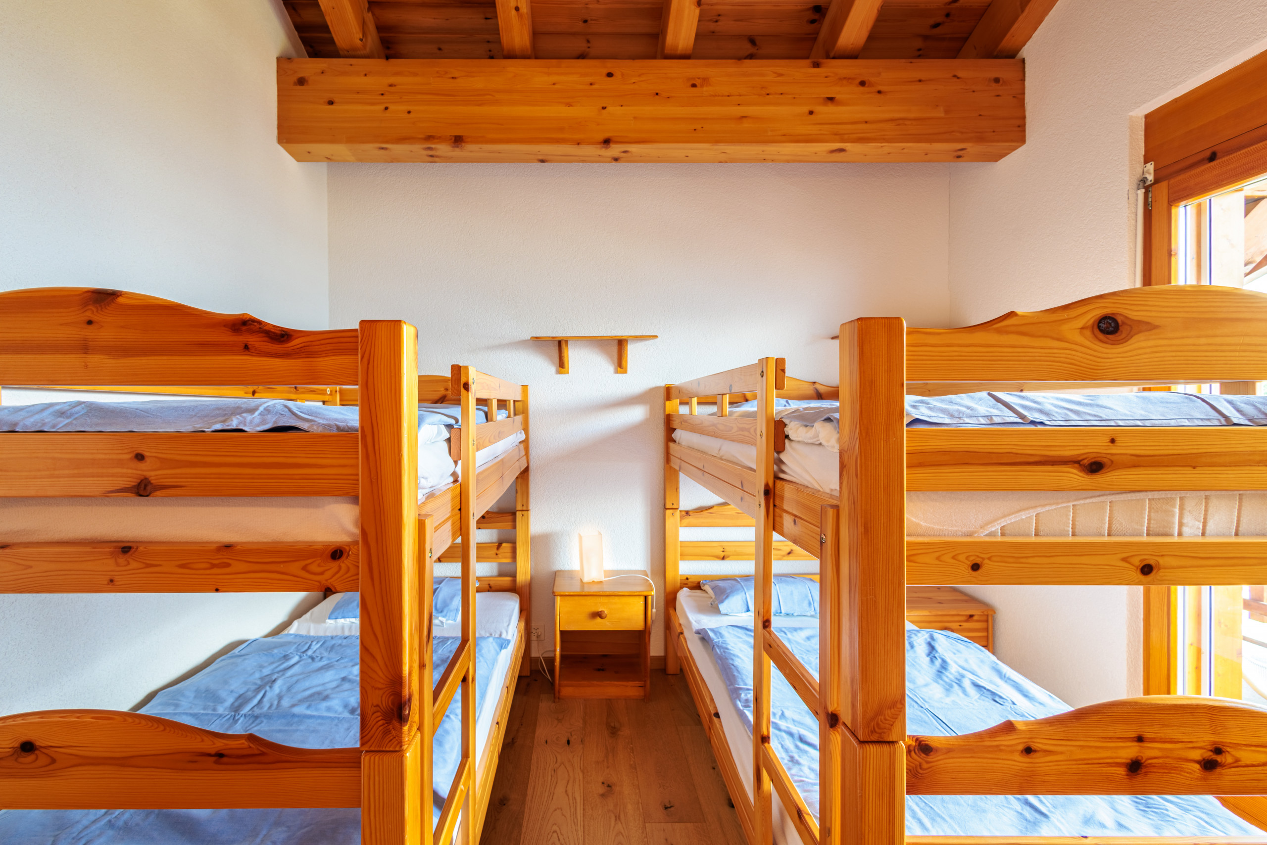 Sehr schöne 6-Zimmer-Wohnung auf 2 Etagen, für 8 bis 10 Personen, ca. 120m2, befindet sich in der Residenz Les Marmottes in Haute-Nendaz und ist wie folgt aufgeteilt: Auf der unteren Ebene : 1 Doppelzimmer für 2 Personen (2 Matratzen) mit Zugang zum Südbalkon - 1 Zimmer mit Etagenbett für 2 Personen und Zugang zum Nordbalkon - 1 Zimmer für 3 Personen mit 2 Einzelbetten und 1 Bett 140x200 - 1 Badezimmer mit italienischer Dusche, Wc, Waschbecken und Handtuchwärmer - offene, voll ausgestattete Küche (Backofen, Mikrowelle, Ceranfeld, großer Kühlschrank, Nespresso-Kaffeemaschine) - Wohnzimmer mit geräumiger Essecke mit Ausgang zum Südbalkon, Sitzecke mit Flachbildfernseher, DVD Blu-ray, PS2 (mit Spielen) und WIFI. Obergeschoss: 1 separates WC mit Waschbecken - 1 Schlafzimmer mit 1 Doppelbett (2 Matratzen) und 1 Einzelbett - 1 Schlafzimmer mit 1 Bett. Babybett und Hochstuhl stehen in der Wohnung zur Verfügung. Auf dem Treppenabsatz: sehr großer Kleiderschrank zur Verfügung für die Wohnung. Waschküche im Gebäude. Außerhalb: Für das Gebäude reservierte Parkplätze nach Verfügbarkeit. Sehr gute Lage, nur wenige Gehminuten vom Zentrum des Ortes und allen Annehmlichkeiten (Bushaltestelle, Bäckereien, Post, Banken) entfernt.