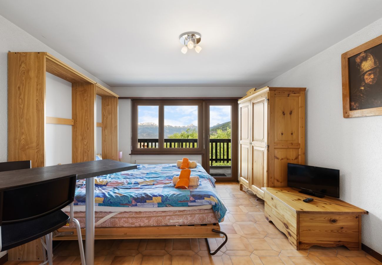 Discover Arnica 2, a lovely small accommodation located in the mountains of Haute-Nendaz, perfectly suited for a couple or a single person seeking a comfortable and well-equipped stay. This 25m² accommodation offers an idyllic setting with a panoramic view of the surrounding mountains.