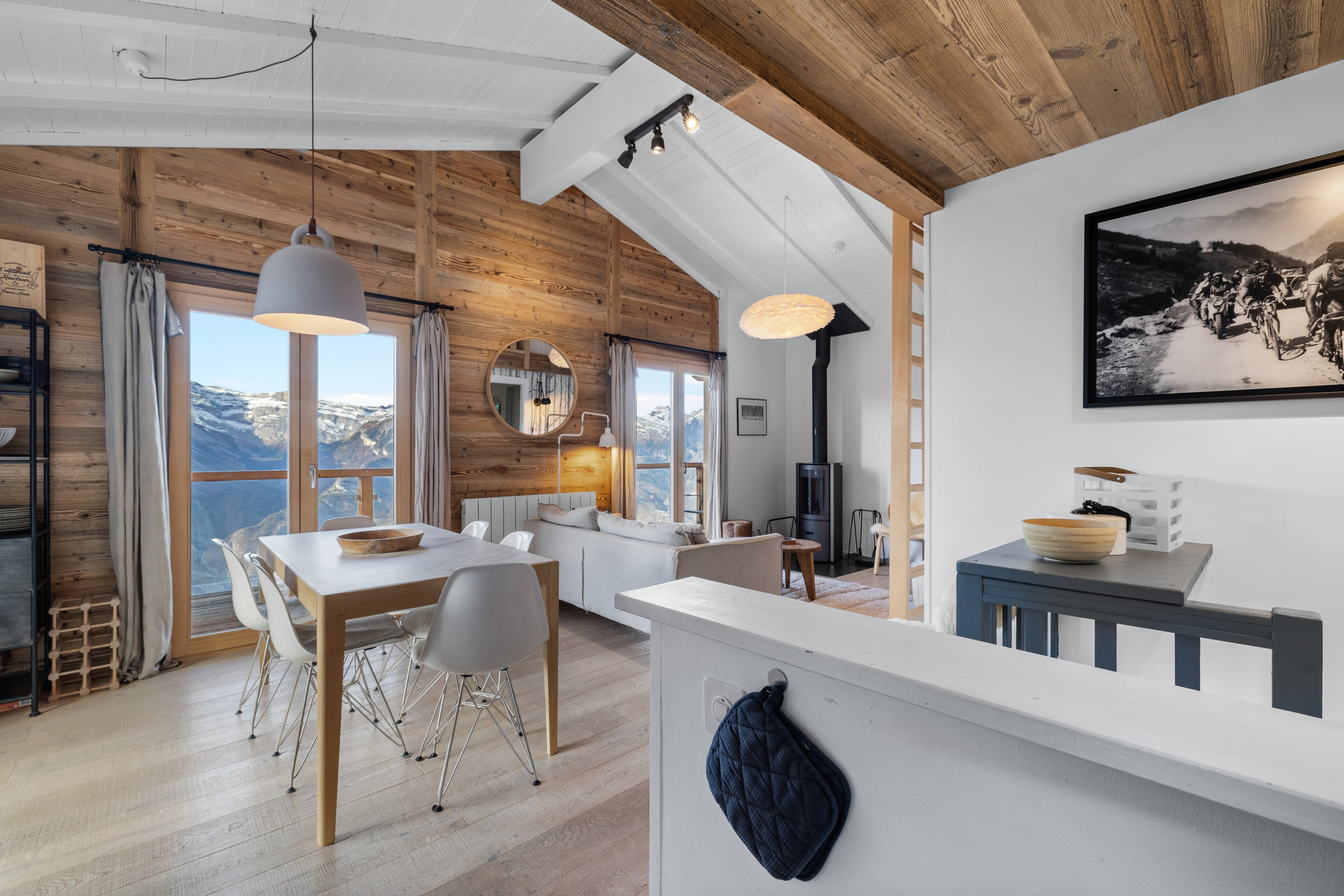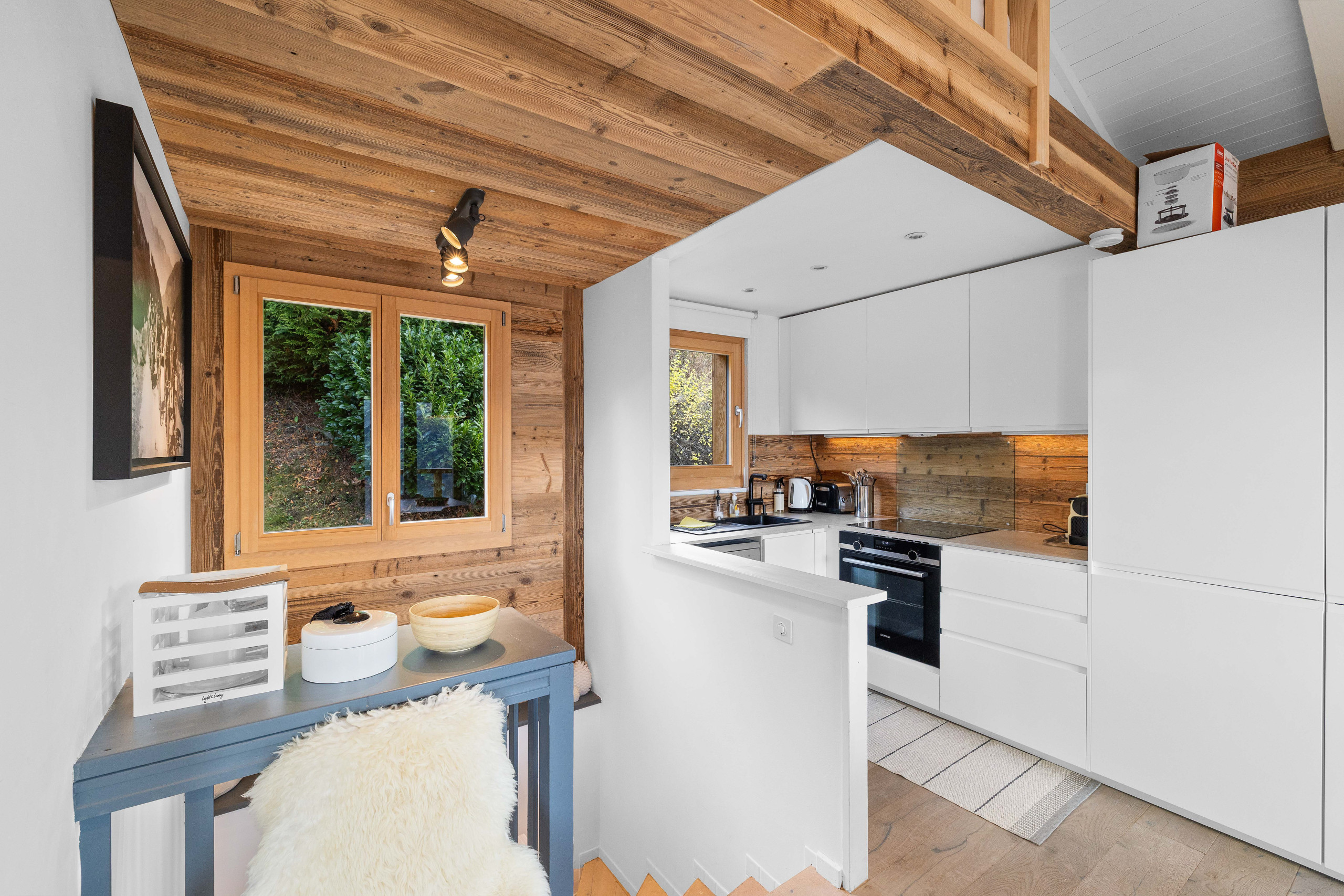 Chalet Freya: a lovely small chalet located in the quiet and sunny neighborhood of Tsamandon, approximately 90m2, for 6 people with a beautiful view of the Alps.