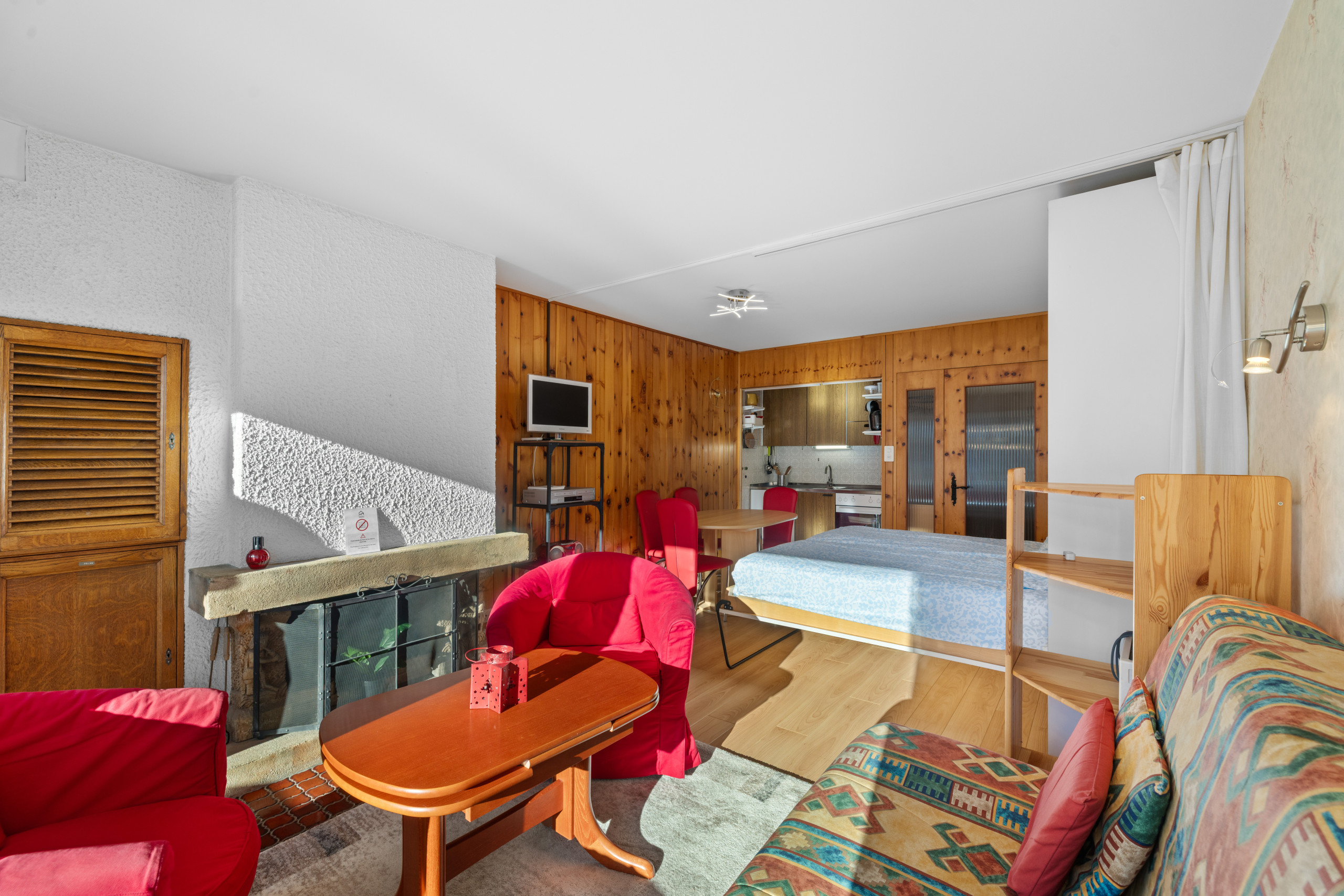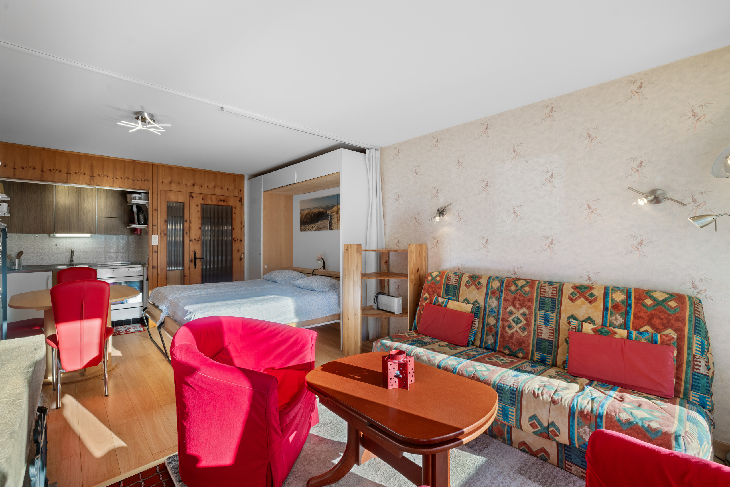 Comfortable studio, approx. 32 m2, for 2 to 4 people, located on the 1st floor of the Les Bouleaux residence, in the centre of Haute-Nendaz.