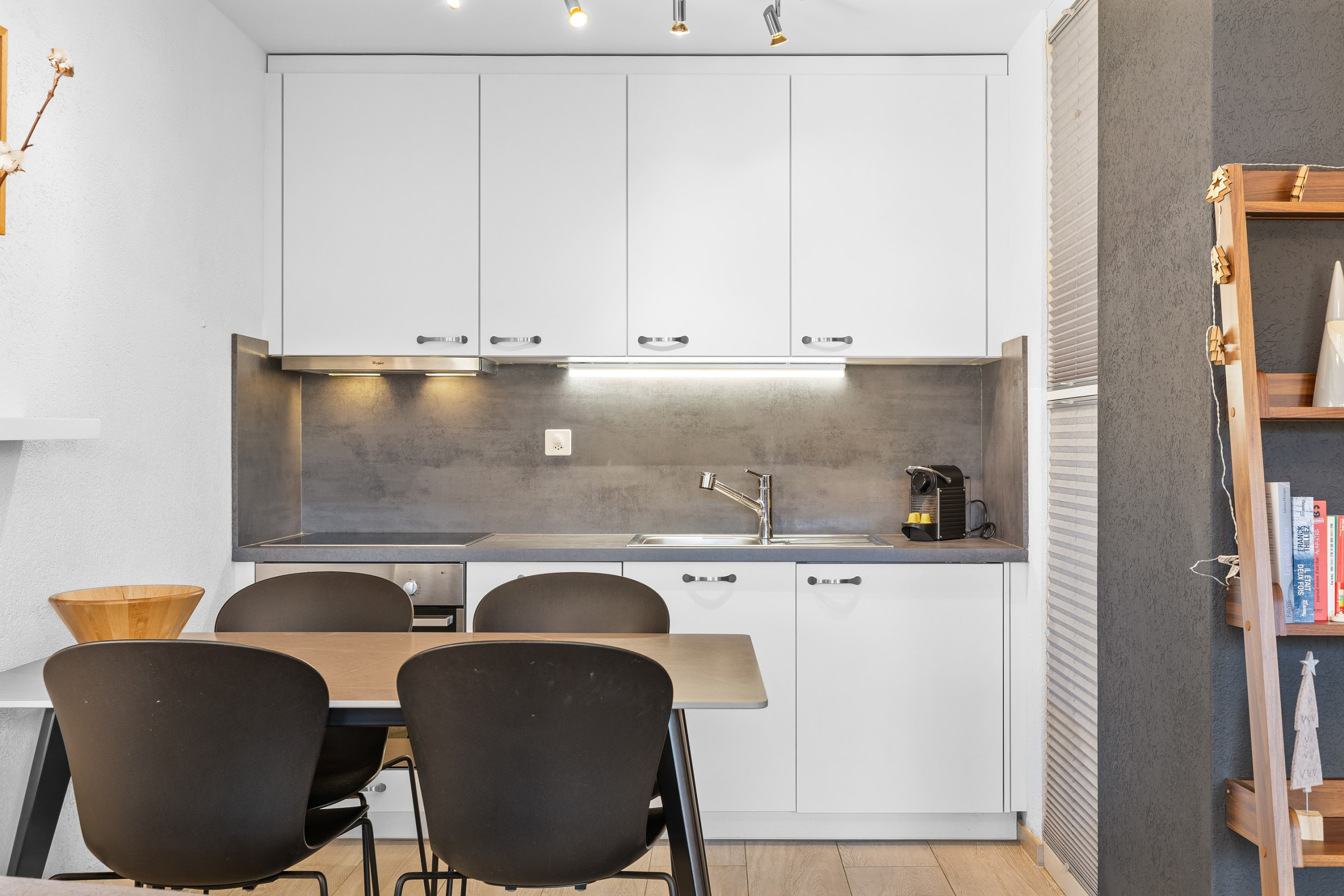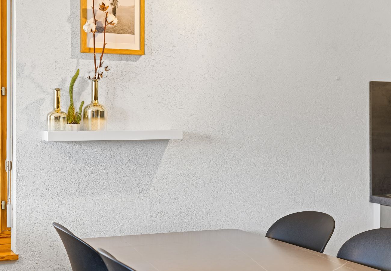 Disposizione: ingresso, soggiorno con zona salotto, TV, wifi, divano letto per 2 persone (160x200 cm), zona pranzo, cucina aperta attrezzata (forno, microonde, lavastoviglie, apparecchi per raclette e fonduta, macchina per caffè Nespresso.), 1 camera da letto separata con 1 letto matrimoniale (140x200cm).