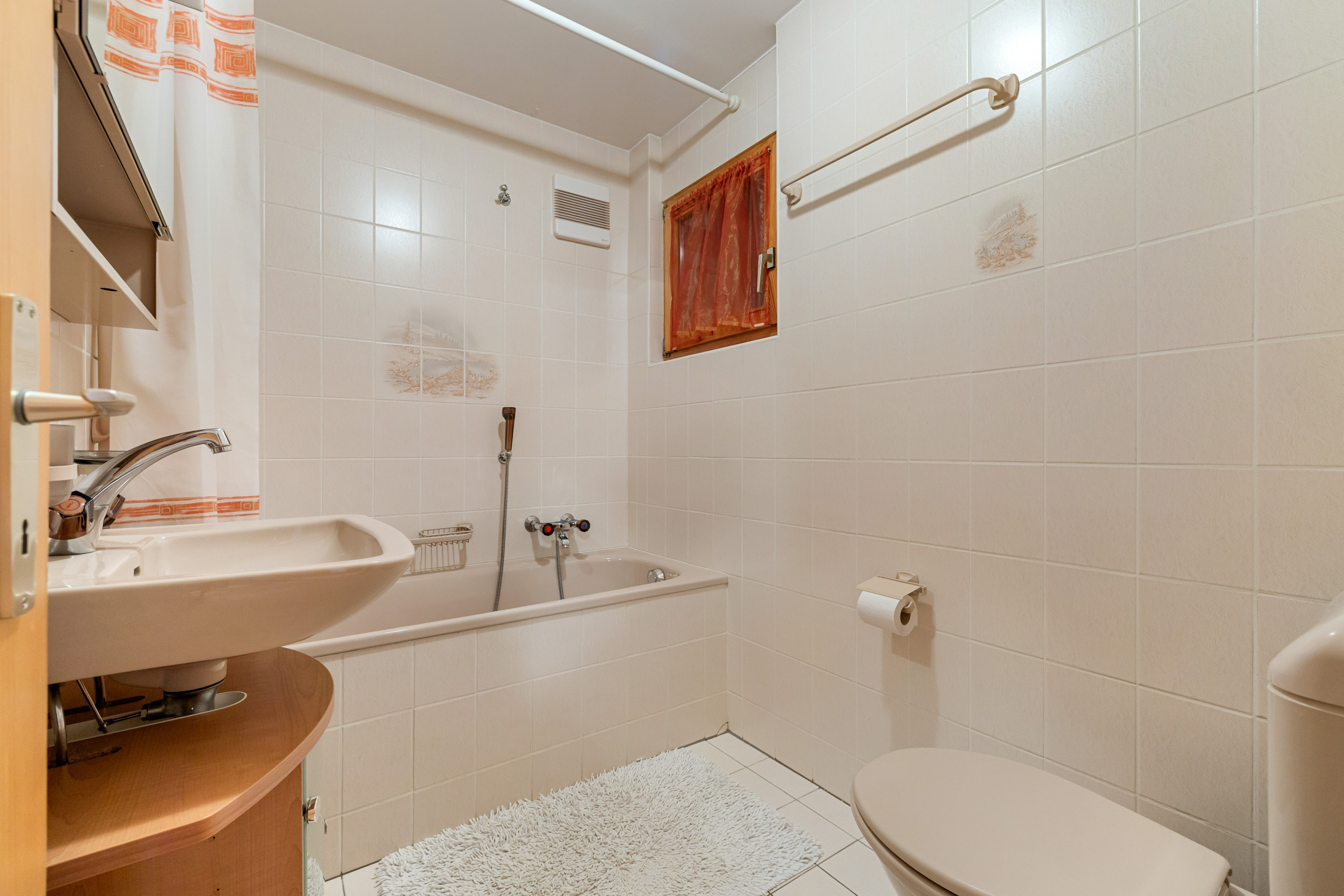 L'appartamento dispone di due camere accuratamente allestite: una camera con un letto matrimoniale per i genitori, un'altra con un letto a castello e un letto singolo, che consente un alloggio flessibile e confortevole. Il bagno con vasca e un bagno separato completano lo spazio interno.