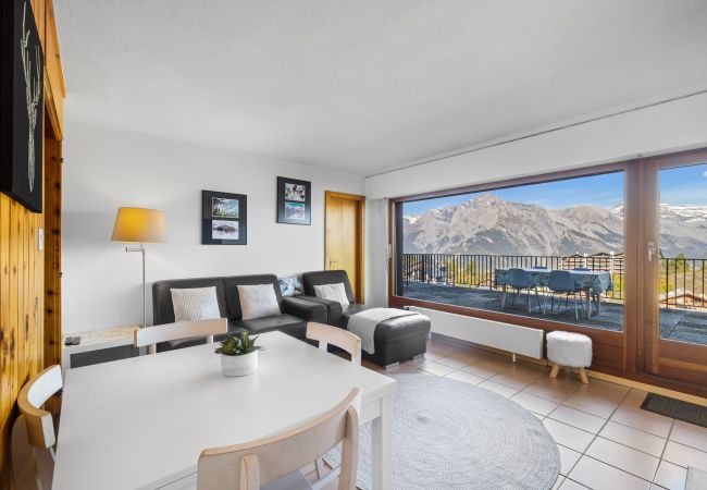 Bel appartement avec une vue à couper le souffle et au pied des pistes de ski, pour 4 personnes, env. 45m2, situé au 4ème étage de la résidence Christiania I à Haute-Nendaz.