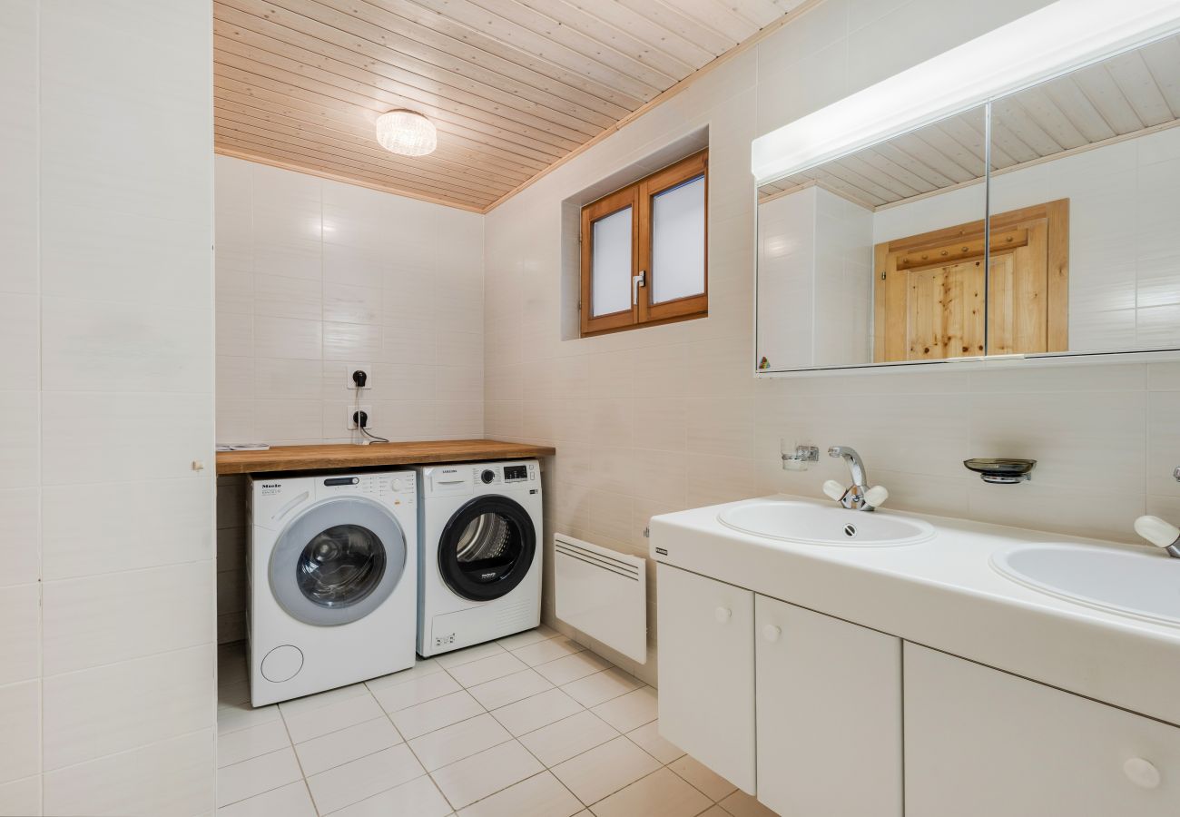A disposition : lave-linge et sèche-linge - rangement pour les skis - places de parc extérieures pour 3 véhicules